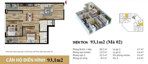 Thiết kế chi tiết căn hộ 93,1 m2 tại dự án căn hộ Stellar Garden