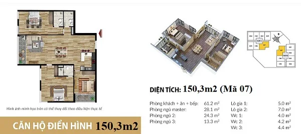 Thiết kế chi tiết căn hộ 150,3 m2 tại dự án căn hộ Stellar Garden