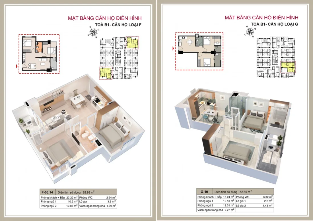 Diện tích: 48,45-52,93m2