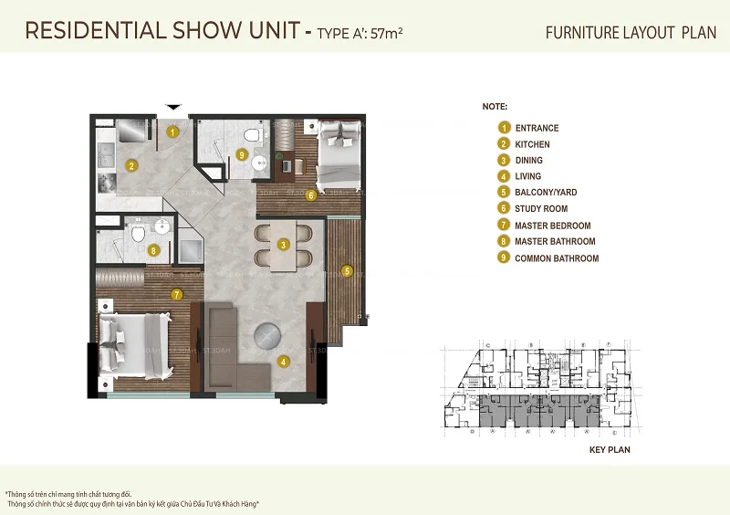 Diện tích các căn hộ dao động từ 57-82m2, được thiết kế dưới dạng 2-3 phòng ngủ.