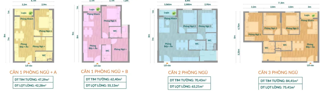 - 1PN loại A: Từ 1 tỷ đồng/căn