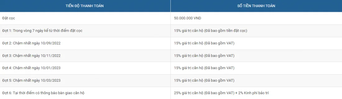 | Căn hộ 1PN+1 view nội khu | 41,57 - 47,61 m2 | 2,2 - 2,8 tỷ |