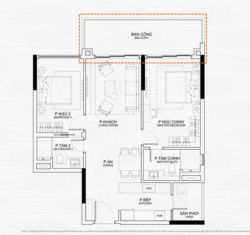 Thiết kế căn hộ 2 phòng ngủ