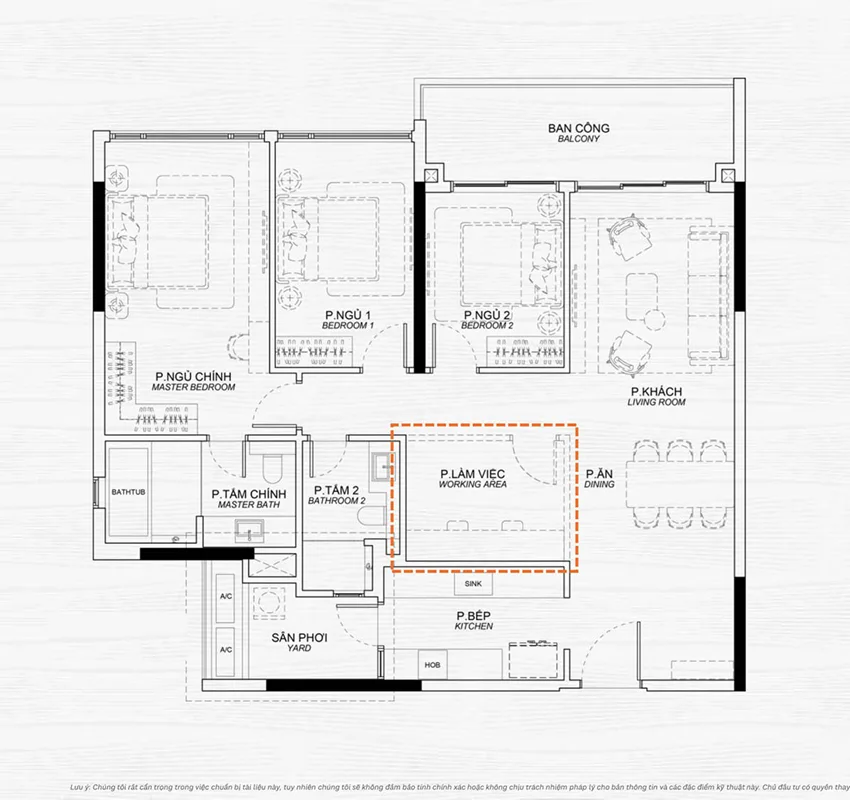 Thiết kế căn hộ 4 phòng ngủ