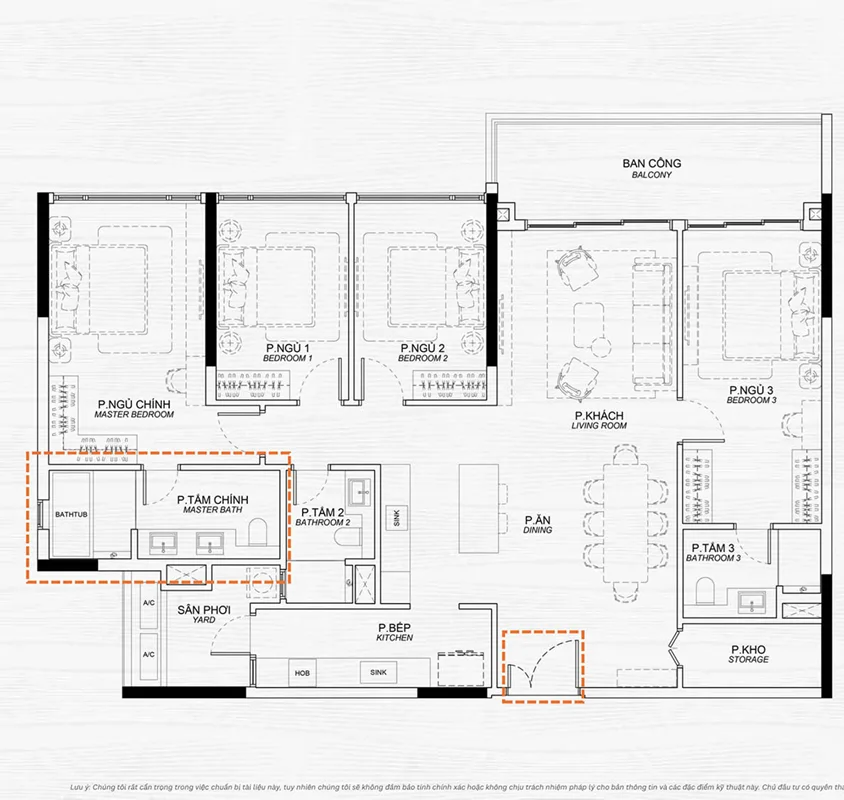 Căn hộ 3 phòng ngủ