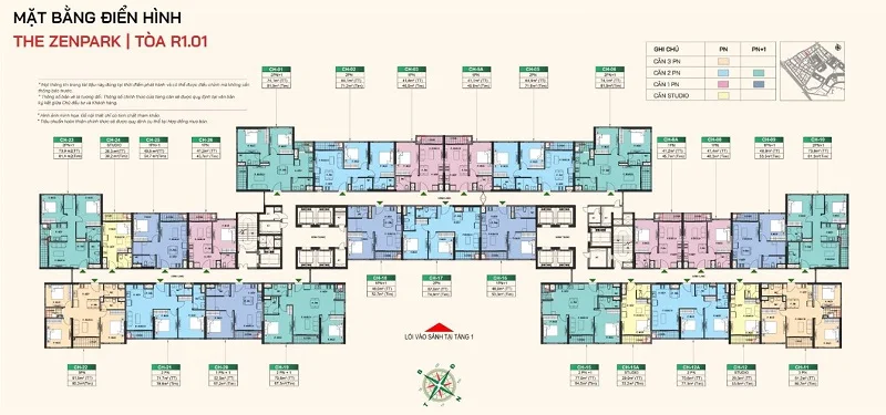 Mặt bằng tầng điển hình tòa tháp R1.01 tại khu The Zenpark
