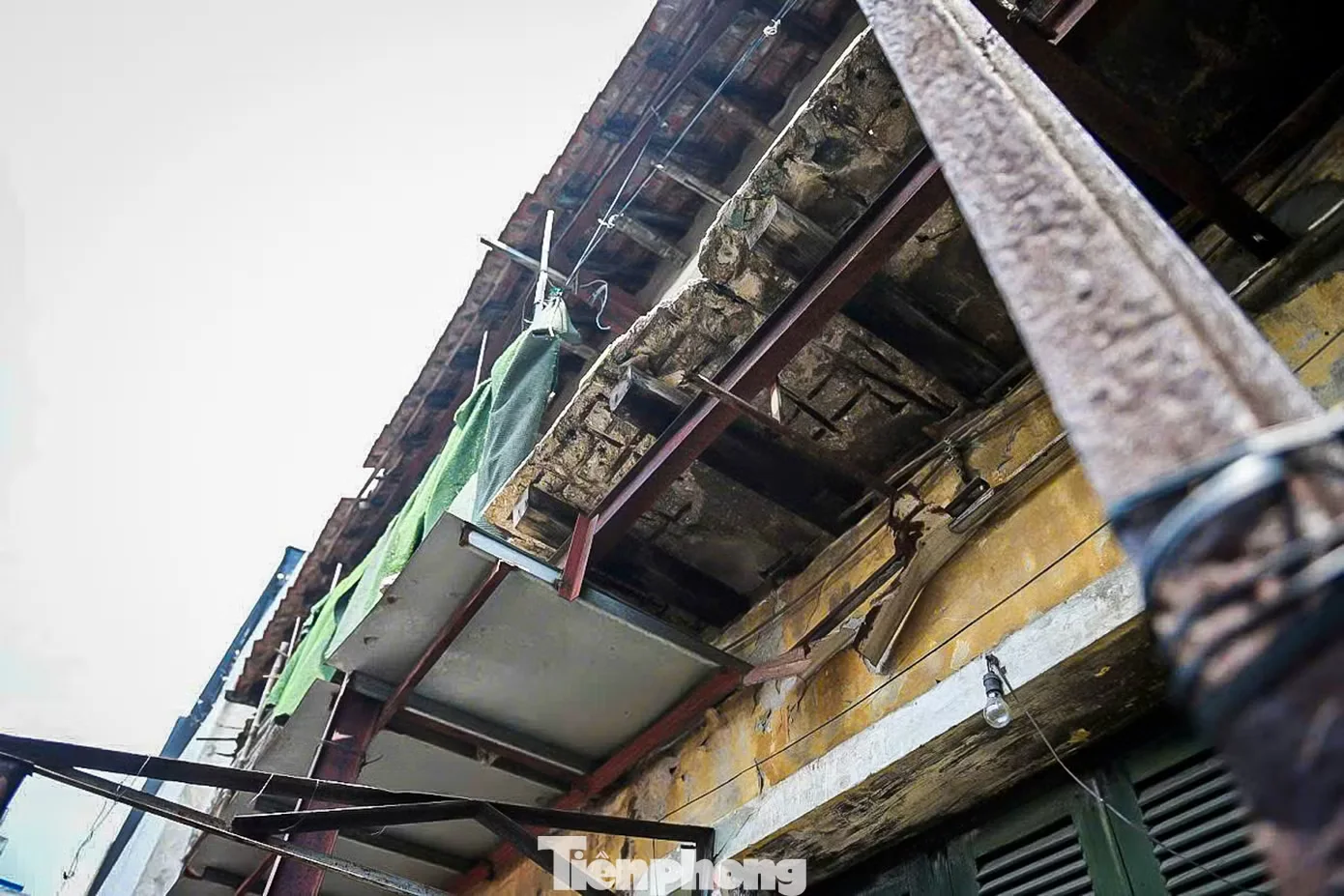 Do khu chung cư này đã quá xuống cấp, người dân phải dùng luồng để chống đỡ mái