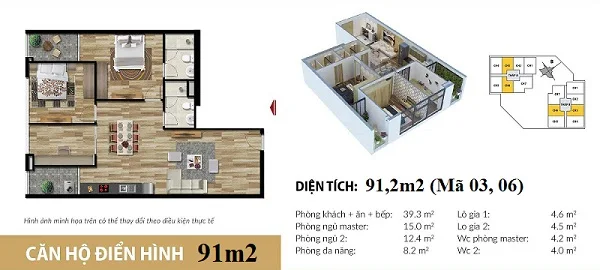 Thiết kế chi tiết căn hộ 91,2 m2 tại dự án căn hộ Stellar Garden