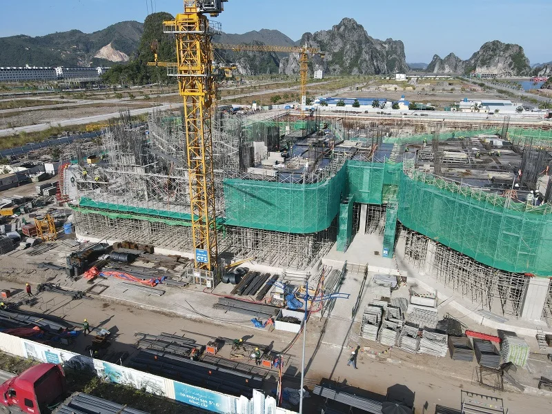 Khối đế tòa A ( Victory) và tòa B – The Oasis đến tháng 3/2024 đã xây đến tầng 7. Bãi tắm Đảo Crystal Vân Đồn đã hoàn thiện cơ bản. Khối đế tòa C và D đã tiến hành lắp cẩu chuẩn bị cho thi công khối đế.