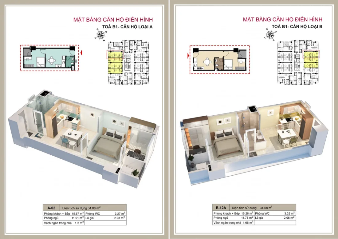 Diện tích: 28,87-34,08m2