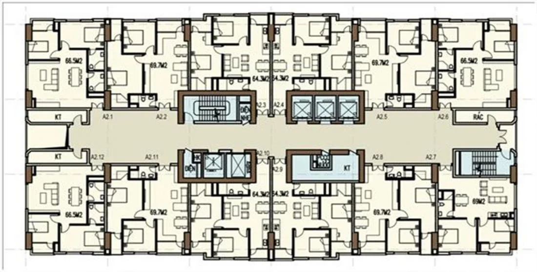 Dự án THT New City cung cấp ra thị trường tổng số 1.496 căn hộ, được thiết kế từ 1 - 3 phòng ngủ, diện tích dao động từ 44,4 m2 – 70 m2.