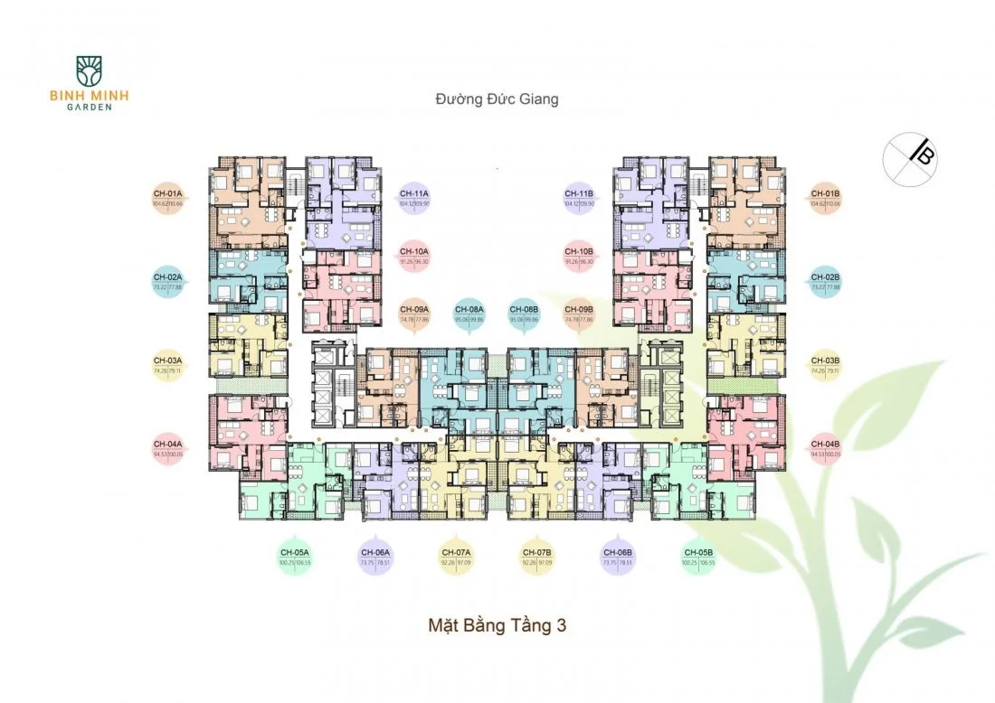 Dự án với tổng số 101 căn nhà phố thương mại, có diện tích dao động từ 78,7 m2 – 146,4 m2. Các căn nhà phố thương mại Bình Minh Garden còn được thiết kế 2 mặt tiền, có lối đi riêng, để đáp ứng nhu cầu kinh doanh và không gian riêng tư cho gia đình.