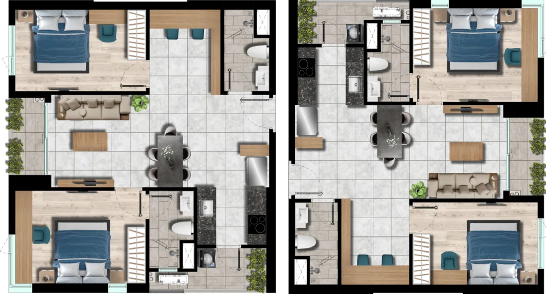 Layout căn hộ 2 phòng ngủ